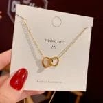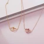 Forged in a warm rose gold finish, this necklace is a harmonious blend of elegance and sentimentality. The simplicity of the interlocked hearts design offers a versatile look that’s perfect for everyday wear or special occasions, making it a cherished accessory for any mother.